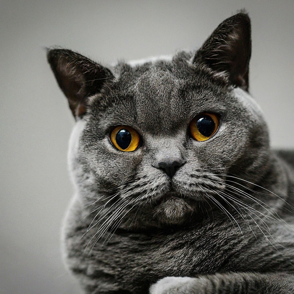 “Please create a photo of a British Shorthair looking both amused and bemused.”
