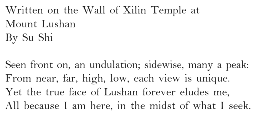 The starstruck monk sends word that Su is welcome to grace the sanctum and, preferably, if he doesn’t mind, leave a few lines of verse to mark the occasion. With his signature cheerful alacrity, Su accepts the invitation and the attendant implicit licence to scribble his poetic inspiration on one of the walls of the holy house.